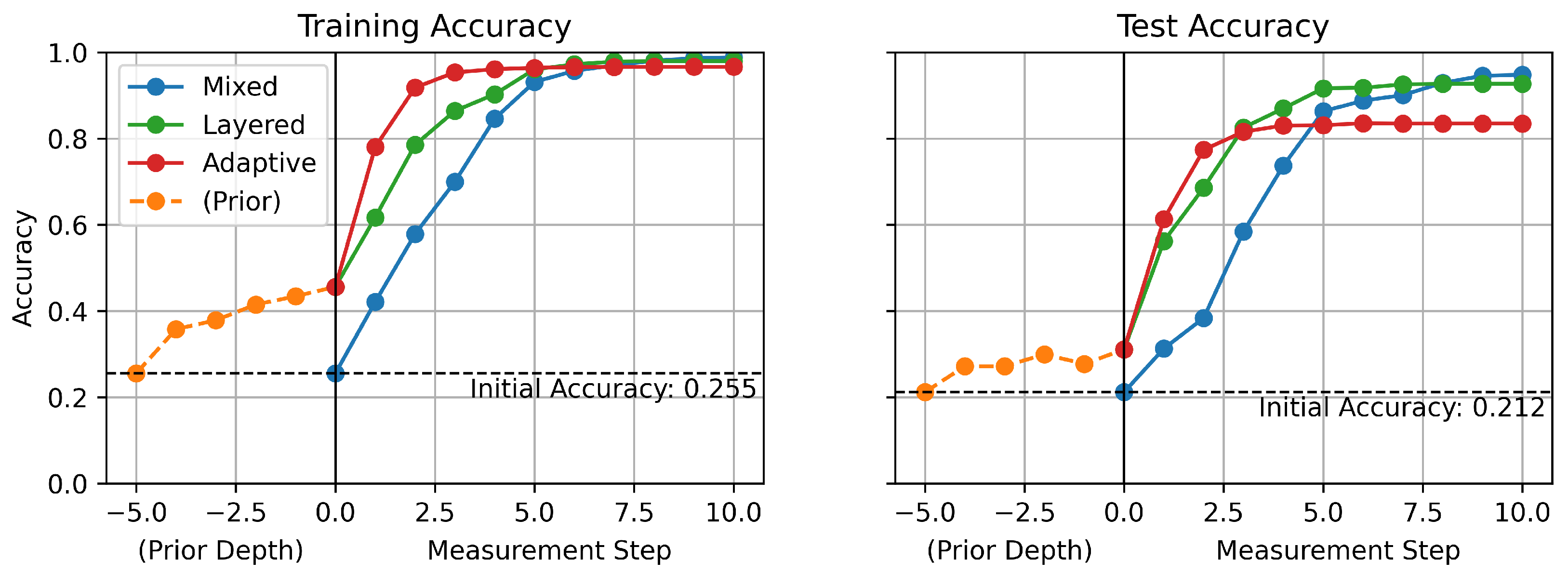 Figure 6 shows the accuracy of the models over measurement step both on the training and test sets. The measurement step denotes in what order the robot is measuring the variable. The proposed models, LDT and ADT, outperform the conventional MDT model, especially at the early stage of measurement steps.