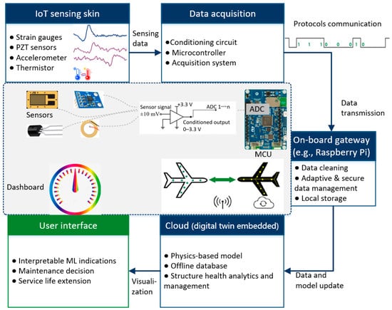 Digital twin-enabled SHM platform for aircraft: system interconnection schematic.