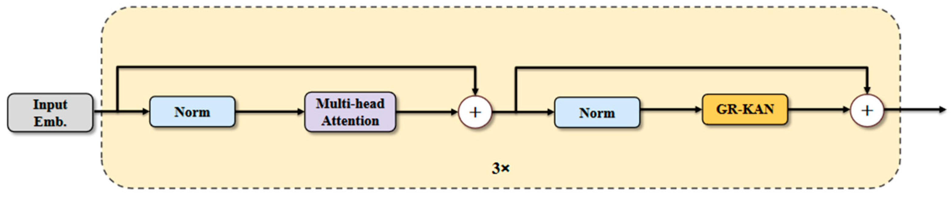 43] substantially reduces the number of model parameters and computational requirements through parameter sharing. Concurrently, variance-preserving initialization within GR-KAN further improves the stability of model training. The formula of GR-KAN is defined as follows:
