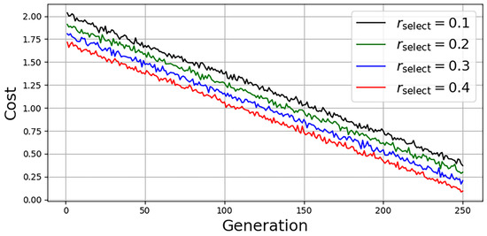 Figure 4 shows the evolution of the fitness function across generations for each configuration. As expected, higher selection rates lead to faster convergence and higher final fitness values because of the better preservation of elite solutions. All configurations demonstrate stable convergence within 30 generations, confirming the practicality of the algorithm for real-time or edge-based deployment.