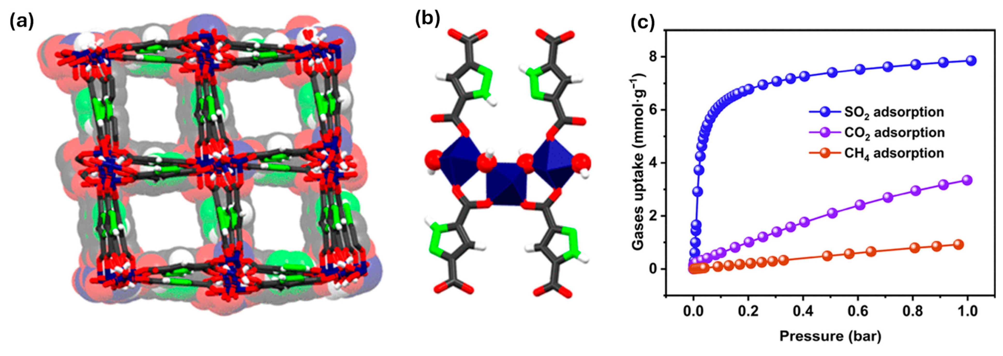 | SO2 | Fossil fuel combustion, industrial operations, power generation | Respiratory irritation | Forms acid rain; damages soil, water, forests, crops; alters aquatic ecosystems | MOFs for selective SO2 adsorption | Potential for trapping industrial SO2; improves environmental mitigation | [47] |