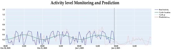Table 1 summarizes the most relevant prior research lines: (i) prediction of thermal stress using classical or deep machine learning, which is typically reactive and lacks explicit circadian modeling [3,14,15]; (ii) circadian analysis of activity, offering descriptive contributions but lacking real-time predictive components [12]; and (iii) behavior classification from accelerometry data (ML/DL) that is not specifically focused on stress or does not integrate a formal circadian profile [16]. Collectively, these studies demonstrate significant progress (see Table 1); however, they fail to fully integrate a circadian profile extracted via FFT with a sequence model (LSTM) that, given the last 24 h circadian reconstruction, predicts the stress level one hour in advance (here, the sequence model refers to a Long Short-Term Memory (LSTM) network that processes time-ordered inputs; the FFT serves as a deterministic preprocessing step to extract circadian components and does not constitute a second classifier).