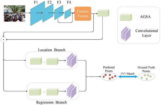 - Song, Q.; Wang, C.; Jiang, Z.; Wang, Y.; Tai, Y.; Wang, C.; Wu, Y. Rethinking counting and localization in crowds: A purely point-based framework. In Proceedings of the IEEE/CVF International Conference on Computer Vision, Montreal, QC, Canada, 10–17 October 2021; pp. 3365–3374. [Google Scholar]