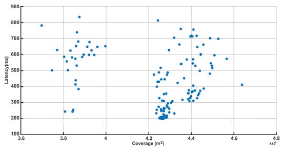 The objective values in our paper (minimizing latency, maximizing coverage, and minimizing energy consumption) have different units and magnitudes. To ensure that all objectives are comparable and consistently directed toward minimization, we follow the standard optimization practice of reversing the sign of maximization objectives, as described by [28]: Any maximization problem can be transformed into a minimization problem by replacing the objective with . Thus, the coverage metric is converted to a minimization objective simply by using the following: