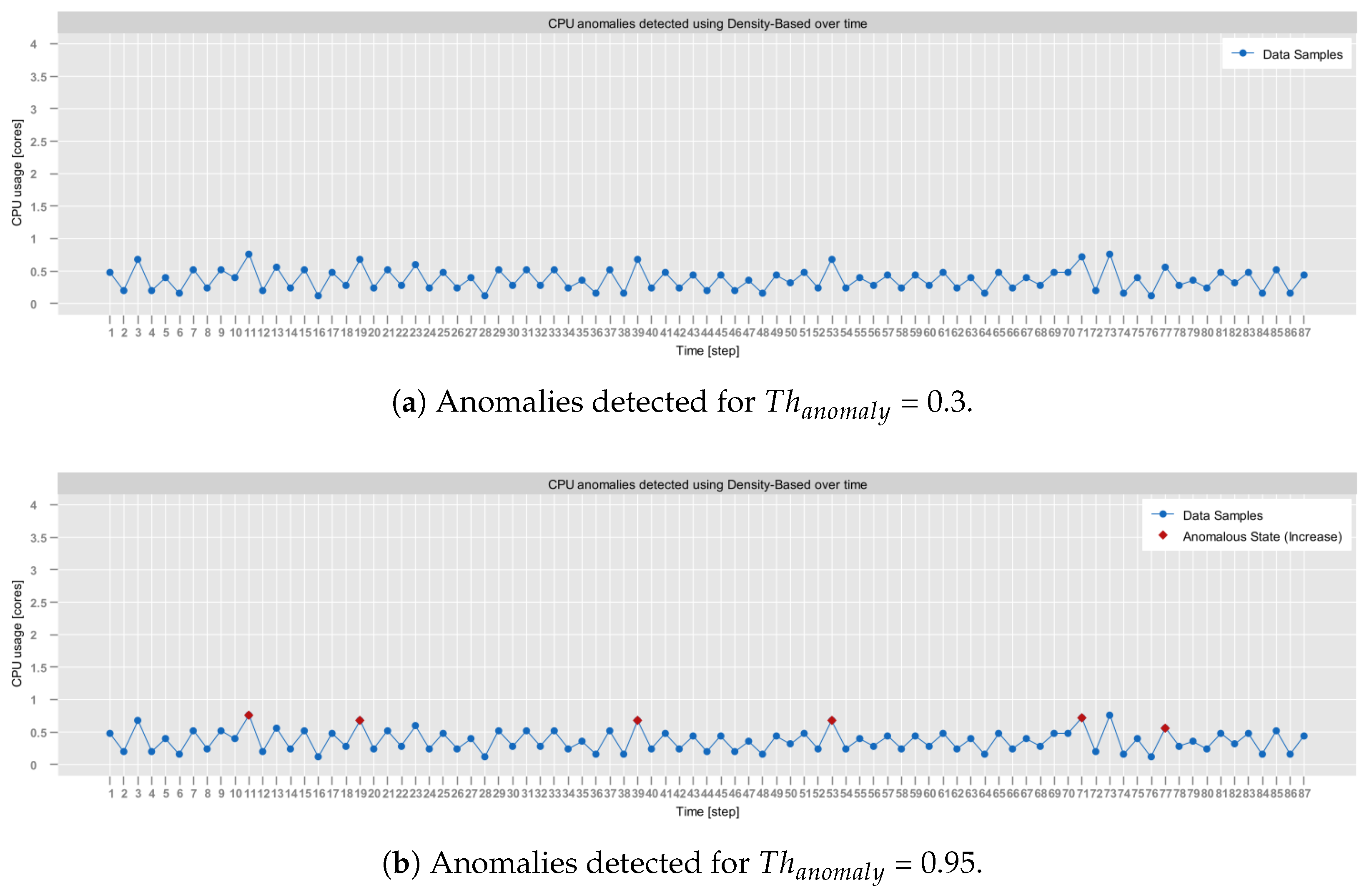 - Shirazi, S.N.; Simpson, S.; Gouglidis, A.; Mauthe, A.; Hutchison, D. Anomaly Detection in the Cloud Using Data Density. In Proceedings of the 2016 IEEE 9th International Conference on Cloud Computing (CLOUD), San Francisco, CA, USA, 27 June–2 July 2016; pp. 616–623. [Google Scholar] [CrossRef]