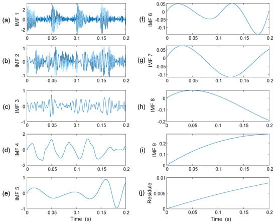 (a–i) IMFs formulated on signal s(t); (j) the residual signal.