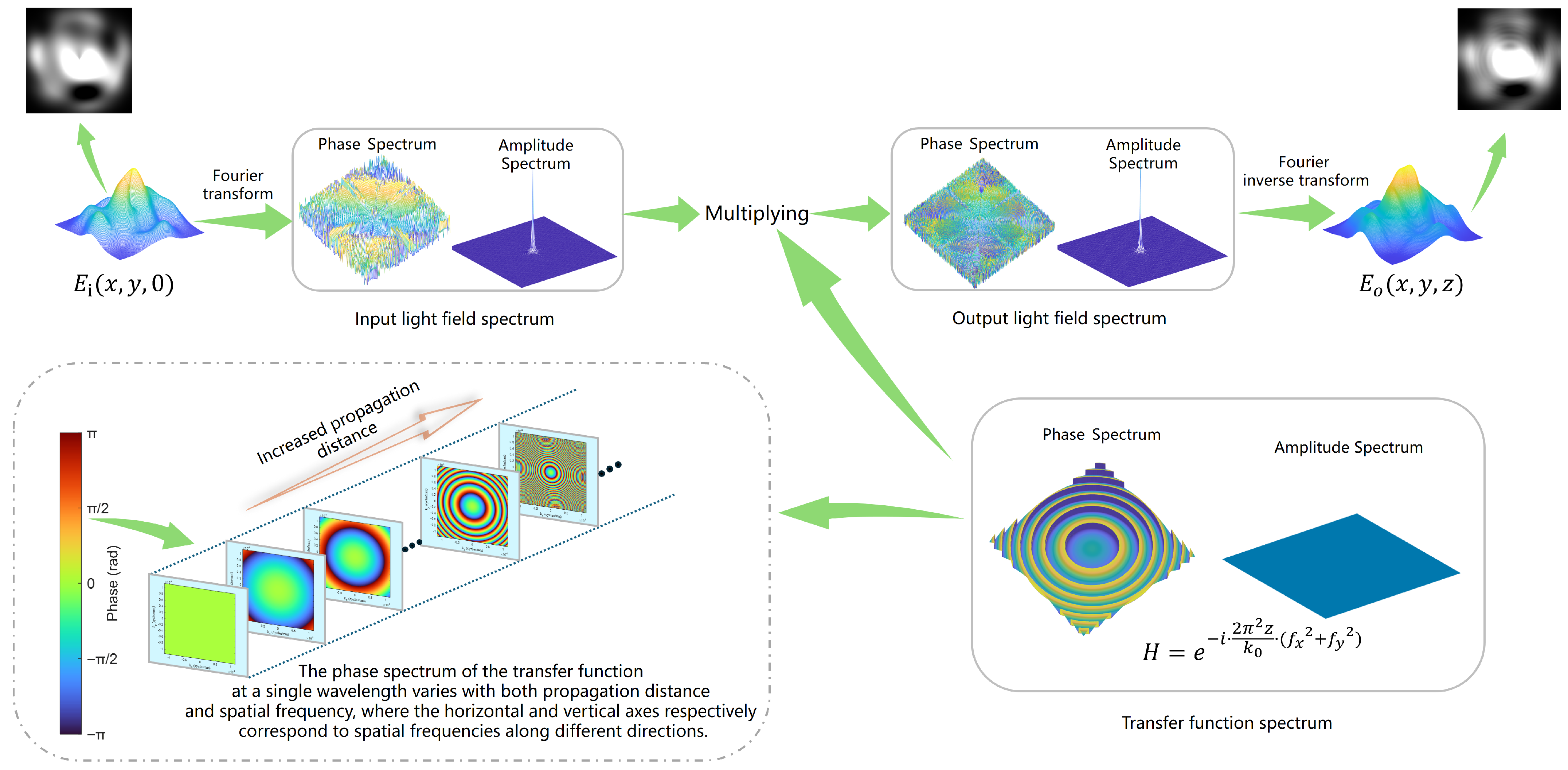 z is a Fourier inverse transformation of the spatial spectrum of the input light field after a phase shift. The overall physical process is illustrated in