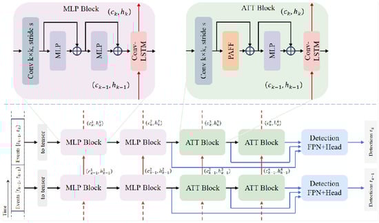 Despite these advantages, current event-based object detection approaches such as CNN-based models [7,8], Graph Neural Networks (GNNs) [9], Spiking Neural Networks (SNNs) [10], and Transformer-based architectures [11] still encounter critical limitations. CNNs are effective for spatial feature extraction but often lack explicit temporal modeling and are computationally intensive. GNNs can capture spatiotemporal correlations, as in AEGNN [12] and MGLNN [13], but suffer from scalability issues. SNNs like CREST [14] are biologically plausible and energy-efficient, yet difficult to train at depth, hindering their scalability. Transformer-based methods such as RVT [11] enhance long-range temporal dependency modeling, but the quadratic complexity of their self-attention mechanisms results in high latency and computational cost, restricting real-time deployment.