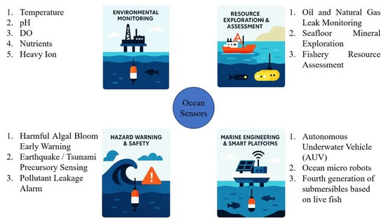 Traditional oceanographic instruments are often bulky and expensive. These features significantly limit their deployment in remote or resource-constrained regions, such as the Arctic Ocean and deep-sea environments. Modern satellite-based ocean sensors provide large-scale coverage. But some limitations, like low spatial and temporal resolution cloud interference, cannot be ignored as they reduce accuracy and applicability in highly dynamic marine environments [11,12].
