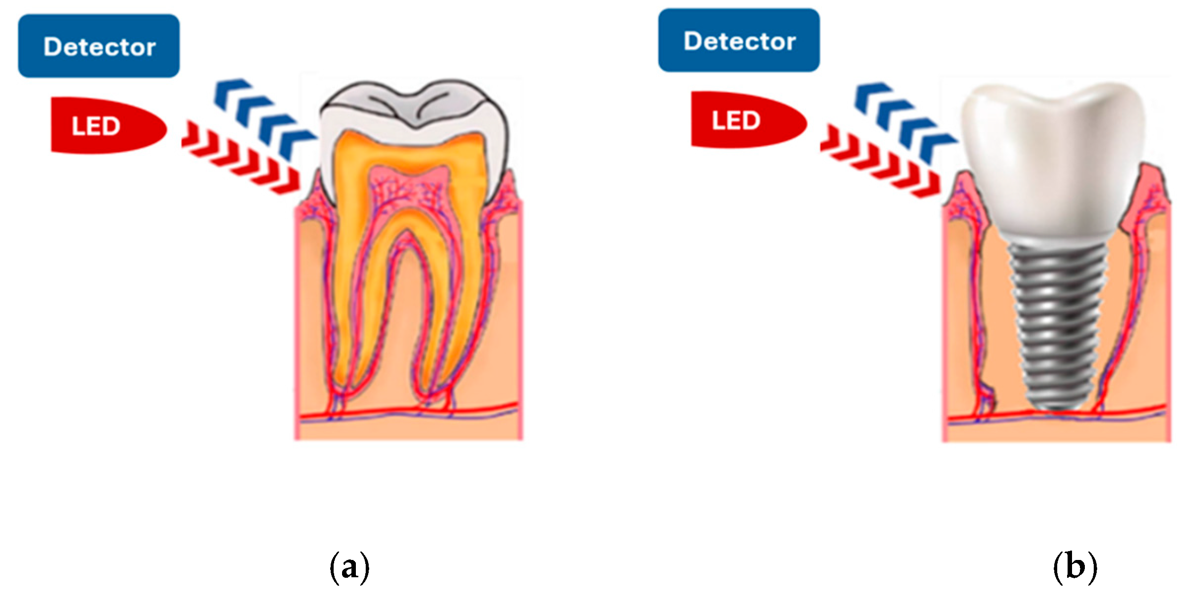 38]. It is important to note that reflective mode pulse oximetry can be applied to various measurement sites, leading to a continuous increase in its demand. To achieve our goal of measuring oxygen saturation in the gums of living teeth or implants (