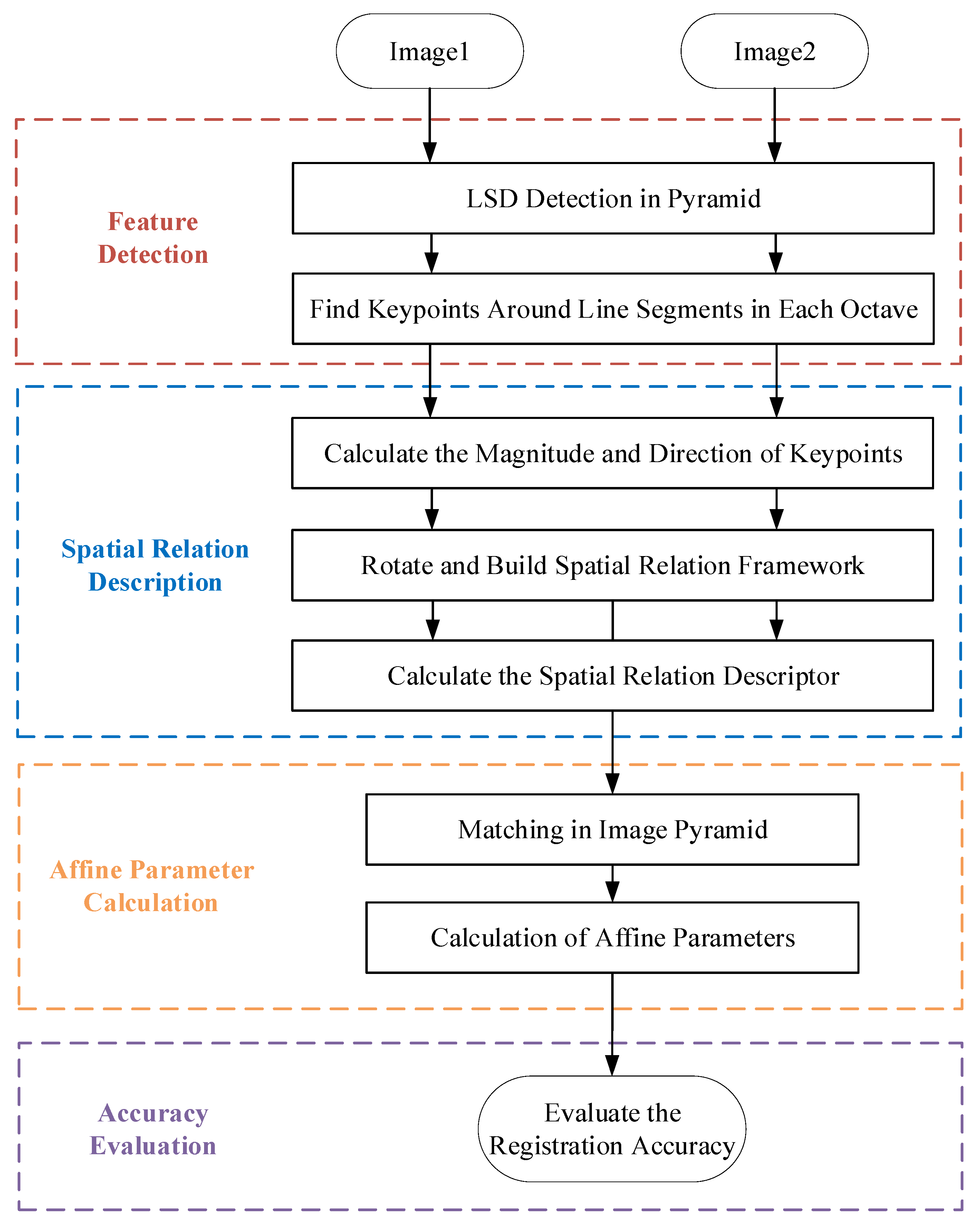 - Liu, S.; Jiang, J. Registration Method Based on Line-Intersection-Line for Remote Sensing Images of Urban Areas. Remote Sens. 2019, 11, 1400. [Google Scholar] [CrossRef]