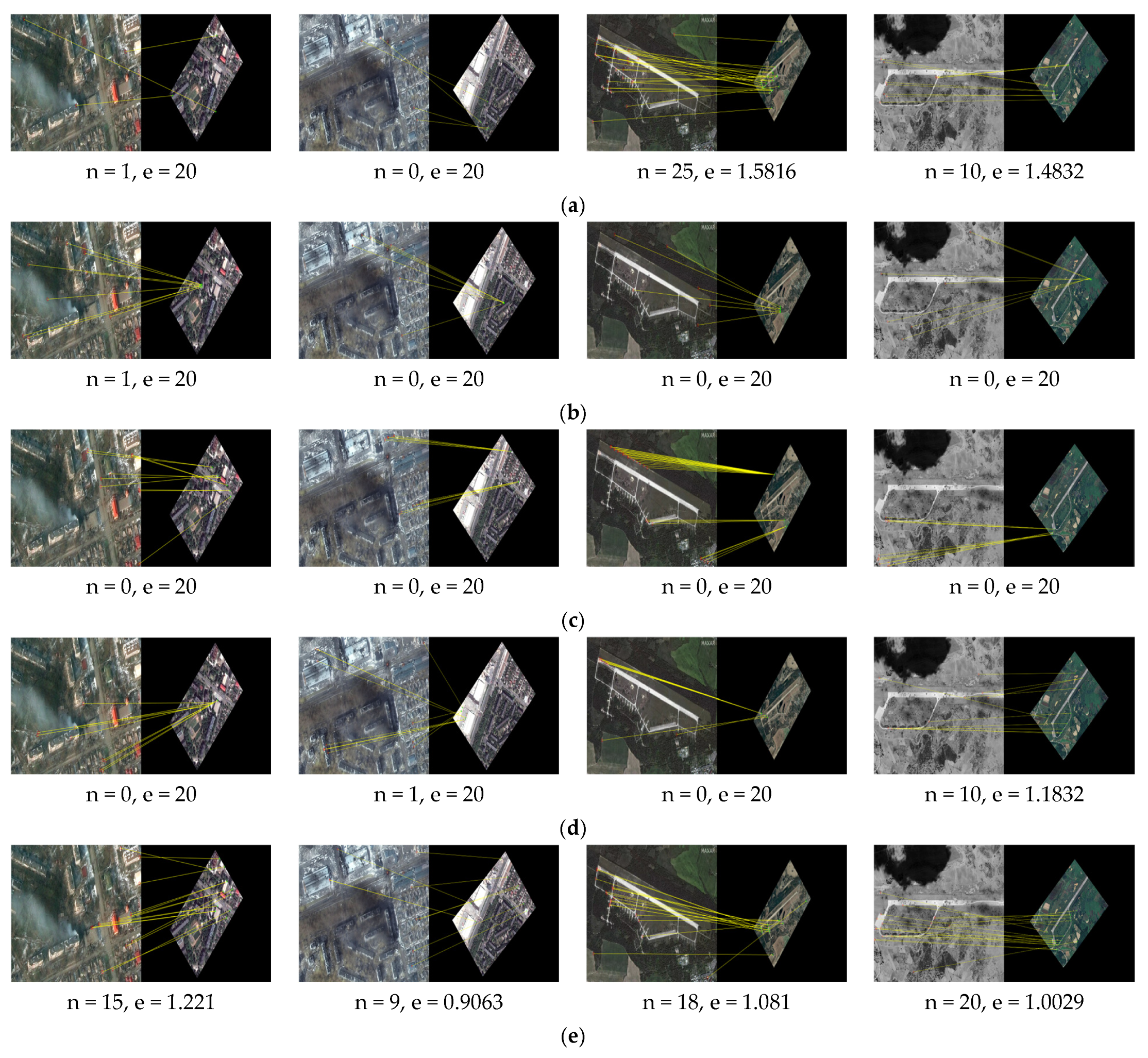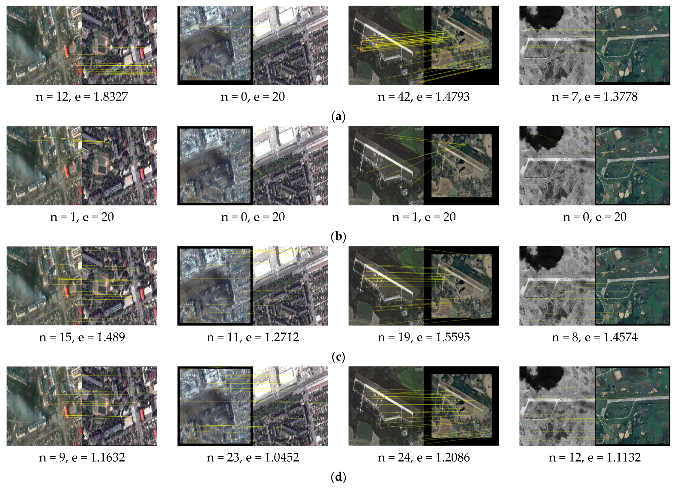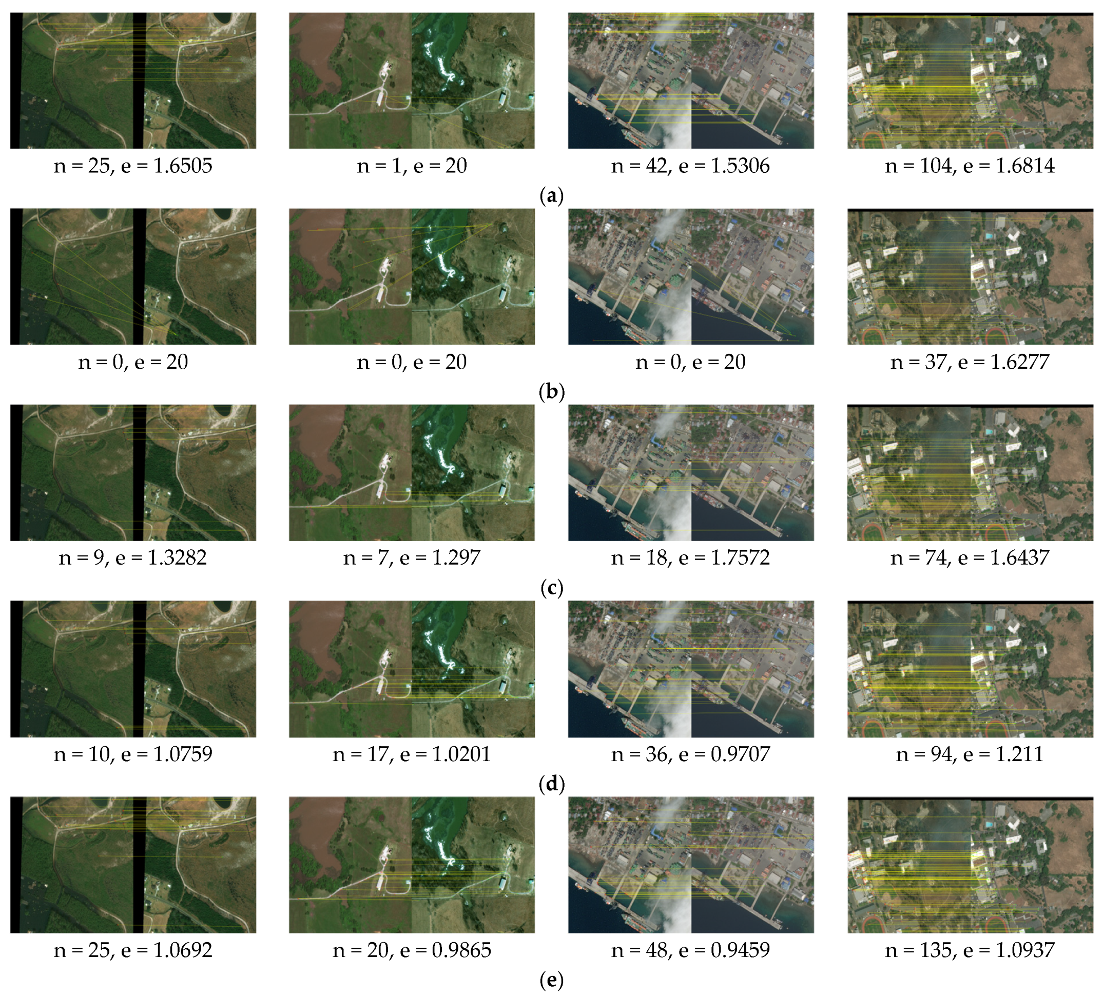 - Yan, H.; Yang, S.; Li, Y.; Xue, Q.; Zhang, M. Multisource high-resolution optical remote sensing image registration based on point-line spatial geometric information. J. Appl. Remote Sens. 2021, 15, 036520. [Google Scholar]
