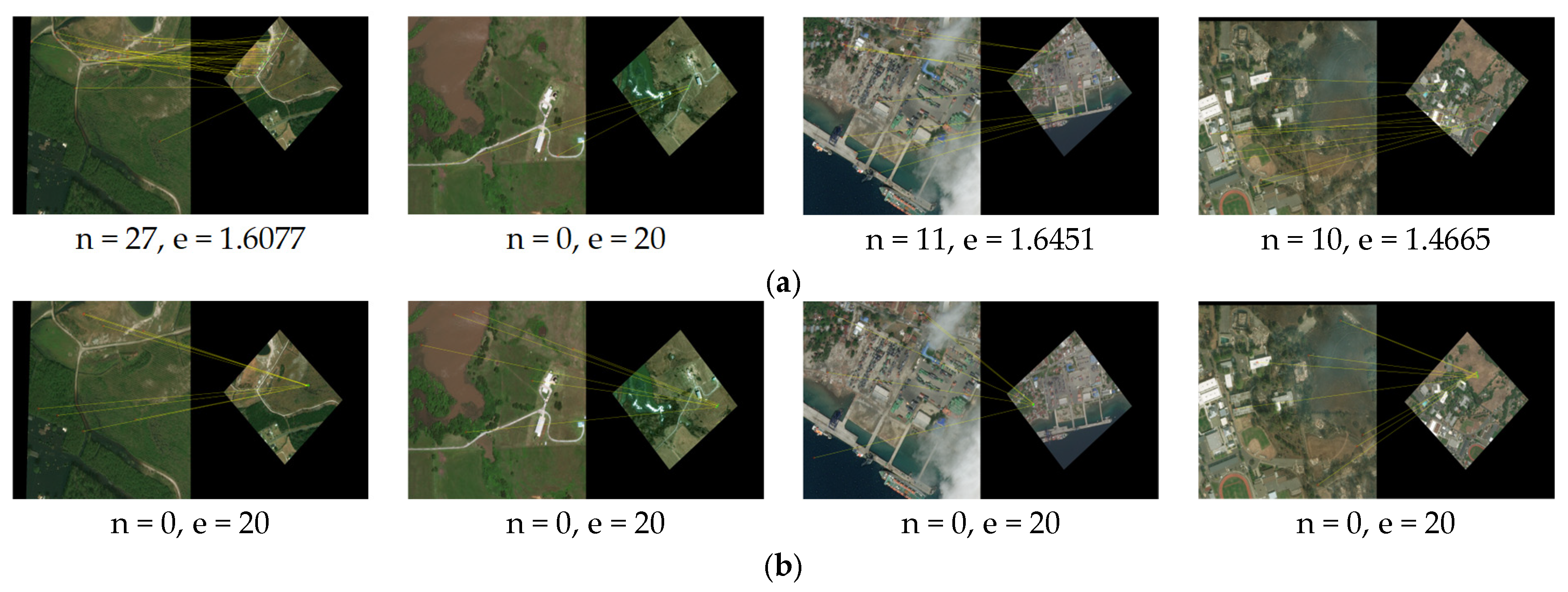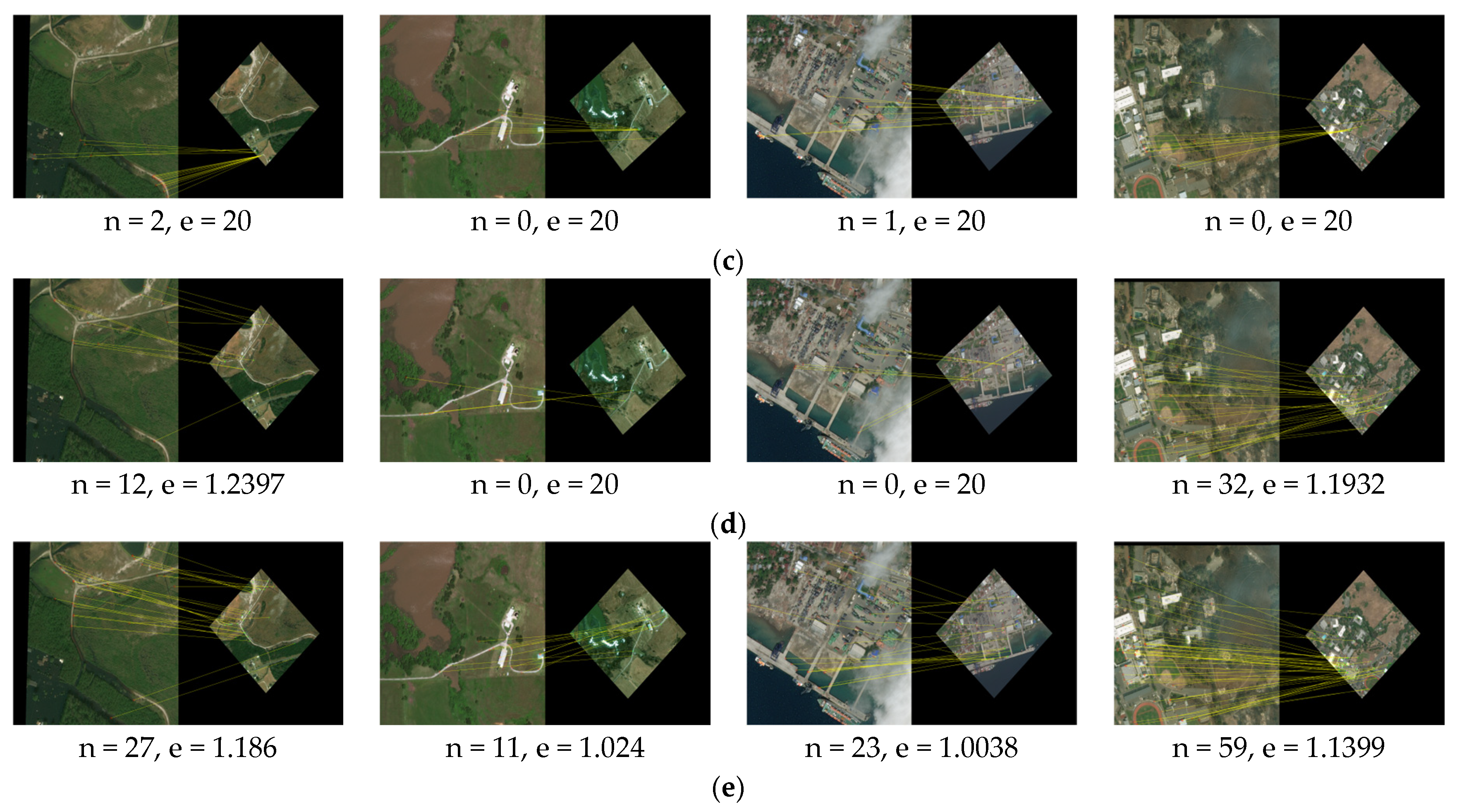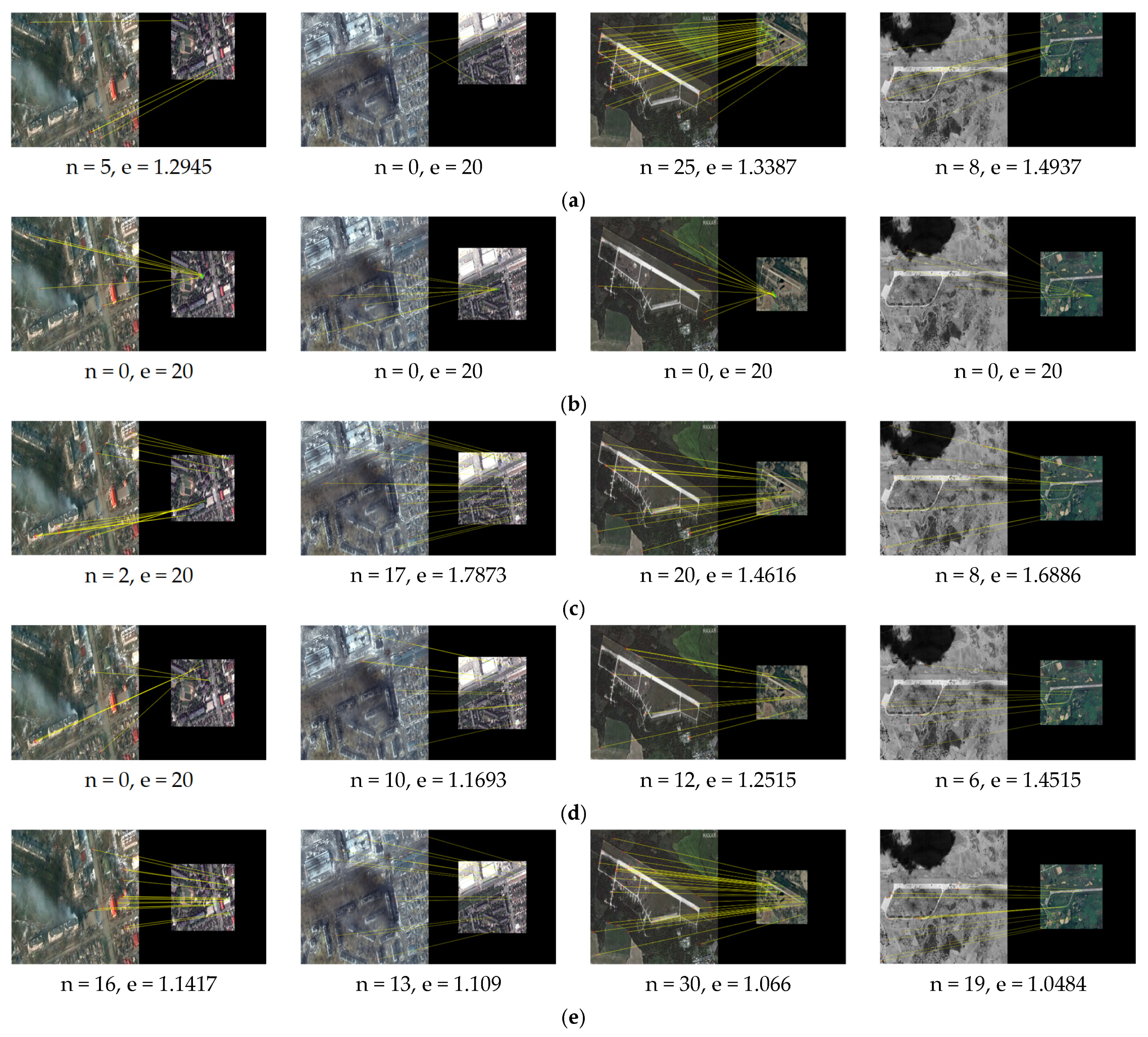 - Yan, H.; Yang, S.; Li, Y.; Xue, Q.; Zhang, M. Multisource high-resolution optical remote sensing image registration based on point-line spatial geometric information. J. Appl. Remote Sens. 2021, 15, 036520. [Google Scholar]