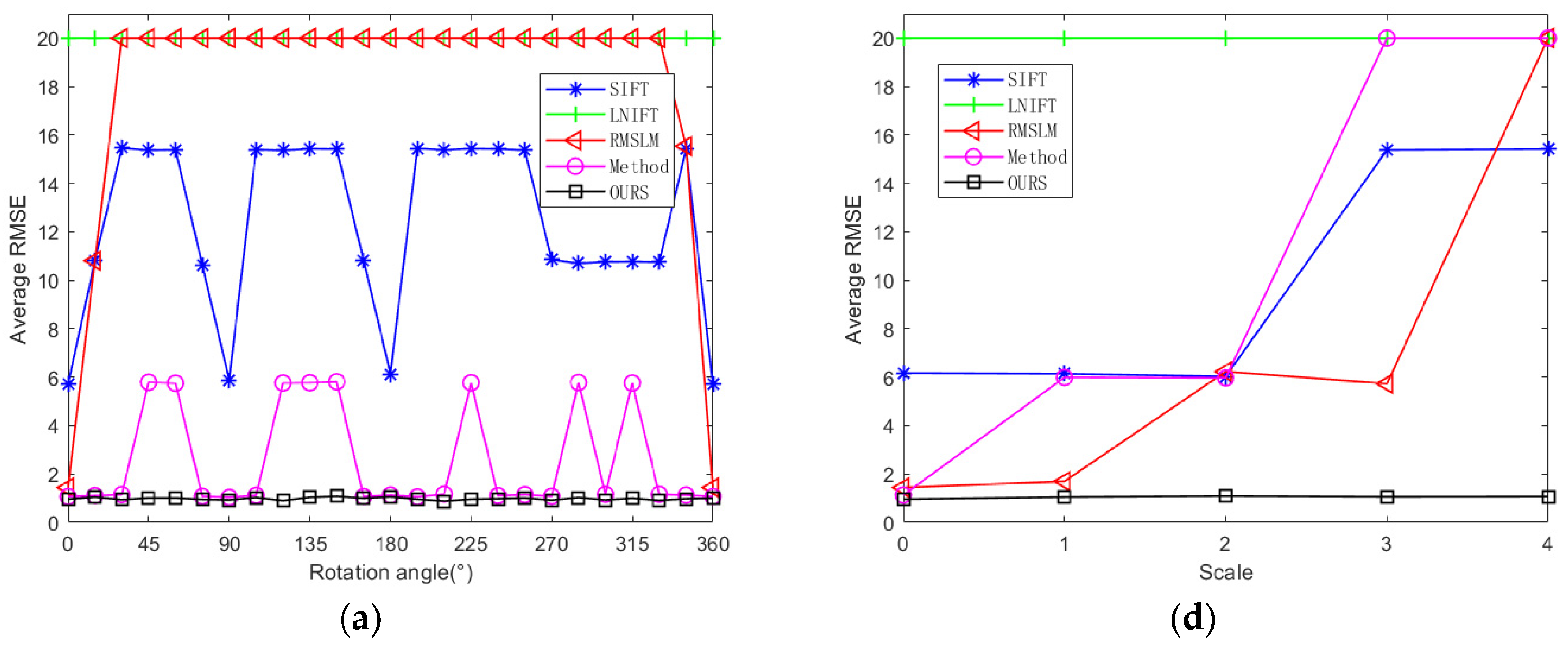 - Zhao, Y.; Chen, D.; Gong, J. A Line Feature-Based Rotation Invariant Method for Pre- and Post-Damage RS Image Registration. Remote Sens. 2025, 17, 184. [Google Scholar] [CrossRef]
