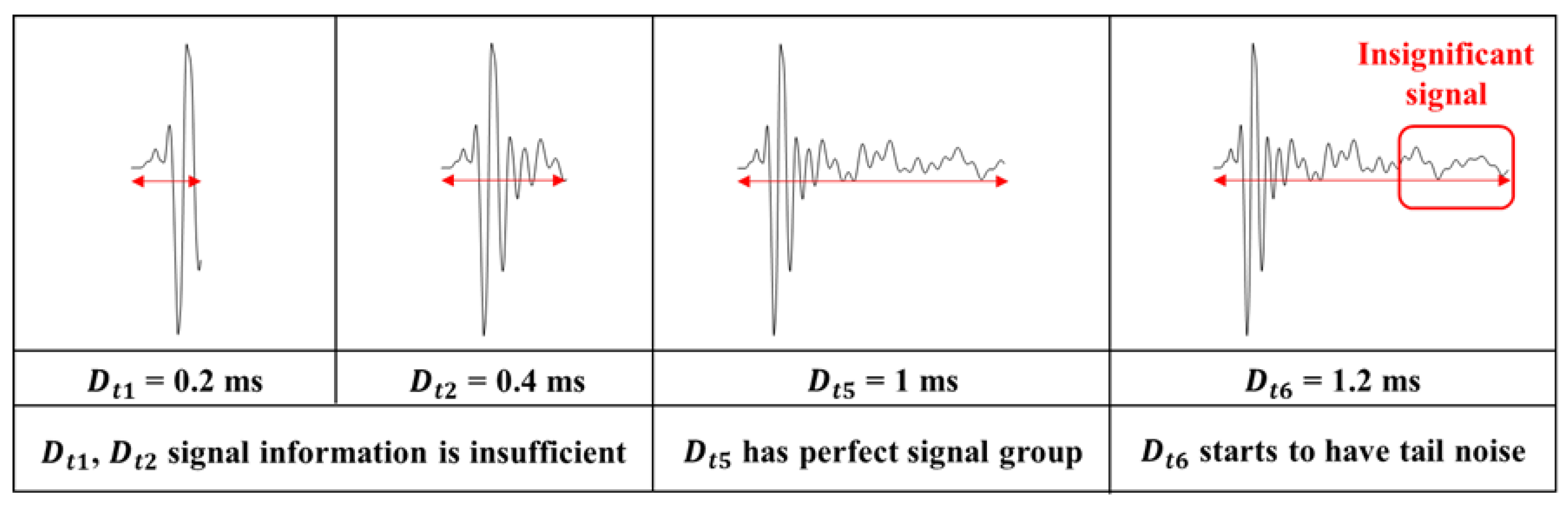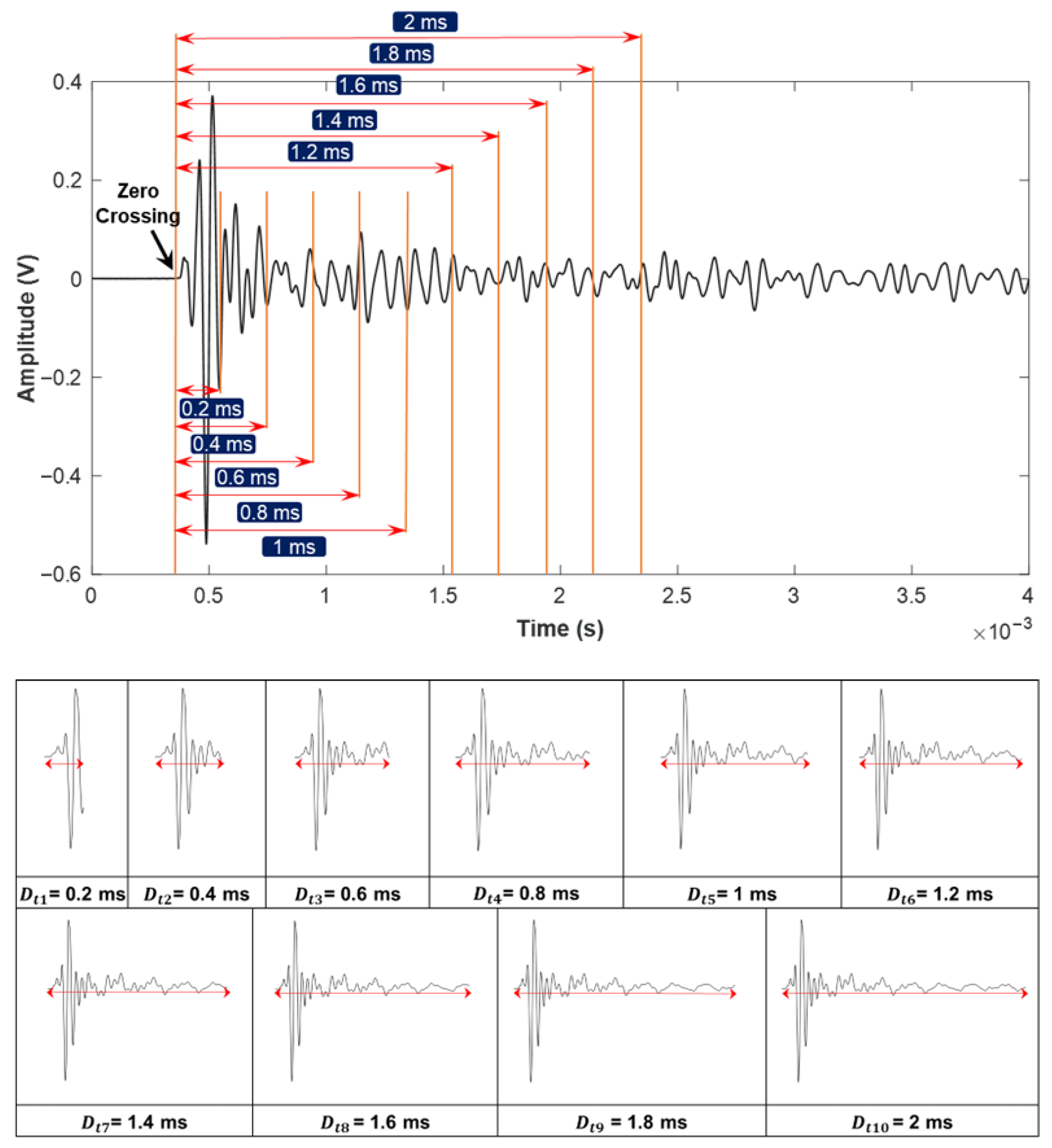 - Deep learning analysis determined that a 1 ms signal duration combined with a 0.1 ms starting point after the zero-crossing delivers optimal damage detection performance, reaching an accuracy of approximately 88.8%.