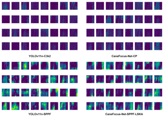 The intermediate feature maps of YOLOv11n and CaneFocus-Net.