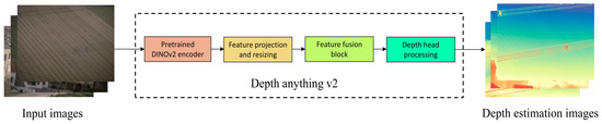 Specifically, the original RGB image is first input to the open-source general monocular depth estimation model Depth Anything v2 to generate a depth map with the same resolution as the original image. The entire process is illustrated in Figure 2. This model demonstrates strong generalization capability and can output smooth and continuous relative depth maps without additional training, effectively characterizing the spatial structural features of various regions within the scene. In power inspection images, wires are usually distributed horizontally and suspended against distant backgrounds, thus appearing as continuous and smooth far-distance regions in the depth map.