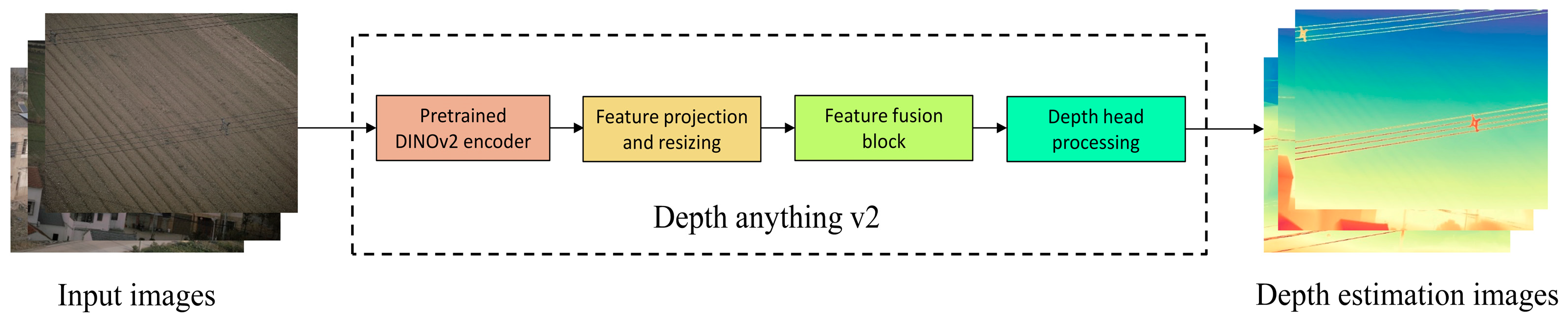 25] proposed a depth map-based wire detection method that obtains monocular depth maps and geometric regression to automatically locate wire segments using a regression network, achieving high-precision localization. This approach accurately extracts wire centerlines and performs spatial position regression, effectively preserving structural integrity in complex scenarios. Hao et al. [