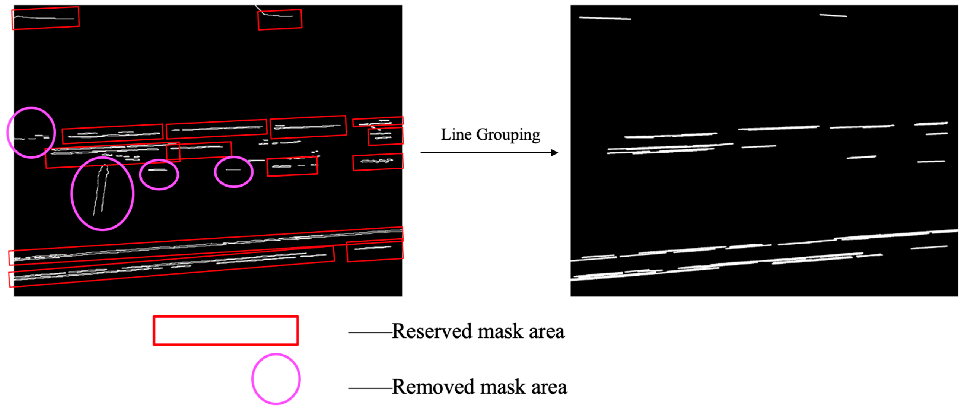 9] proposed a detection method for transmission line strand breaks and foreign object defects based on line structure awareness, employing horizontal and vertical gradient operators capable of detecting line width to extract linear objects in inspection images, followed by analysis of collinearity, proximity, and continuity laws to connect discontinuous segments into long lines, and identifying significant parallel wire groups via parallelism calculations. Tong et al. [