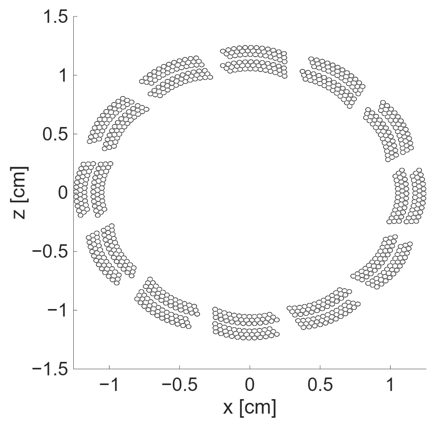 - Roux, E.; Ramalli, A.; Tortoli, P.; Cachard, C.; Robini, M.C.; Liebgott, H. 2-D Ultrasound Sparse Arrays Multidepth Radiation Optimization Using Simulated Annealing and Spiral-Array Inspired Energy Functions. IEEE Trans. Ultrason. Ferroelectr. Freq. Control 2016, 63, 2138–2149. [Google Scholar] [CrossRef]
