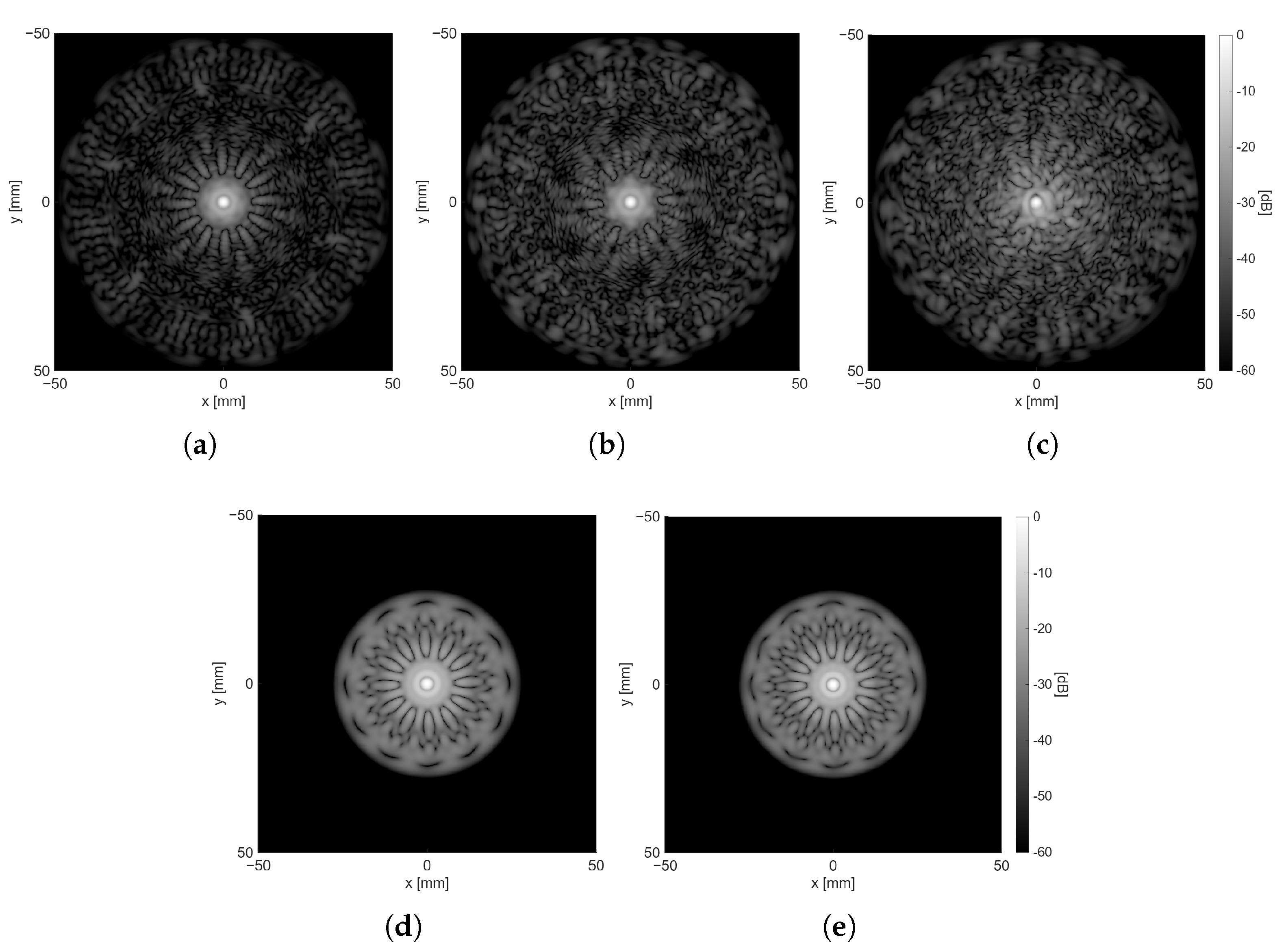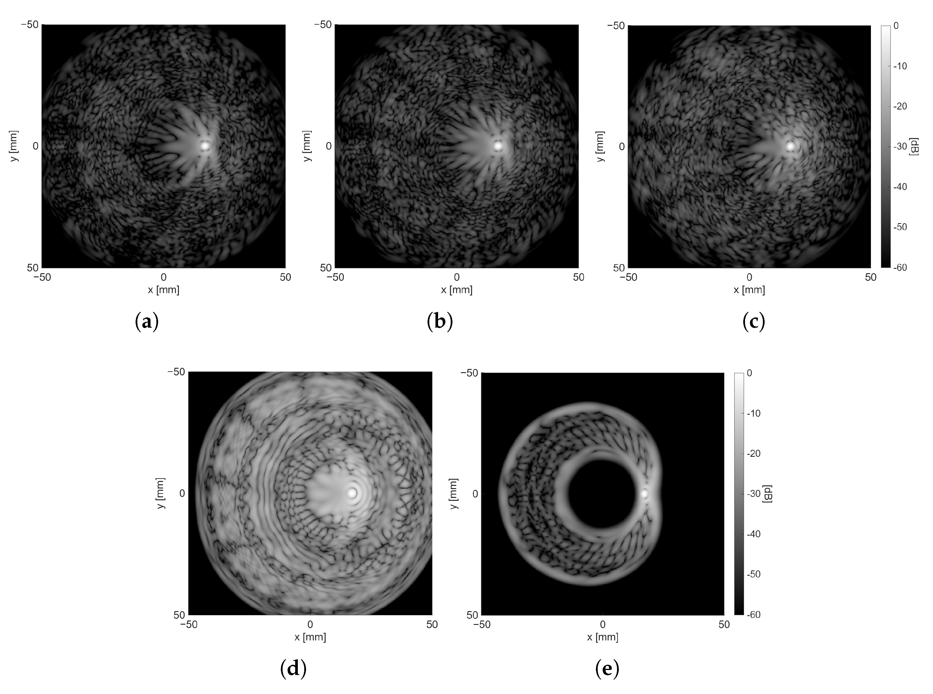 - Treeby, B.E.; Cox, B.T. k-Wave: MATLAB toolbox for the simulation and reconstruction of photoacoustic wave fields. J. Biomed. Opt. 2010, 15, 021314. [Google Scholar] [CrossRef]