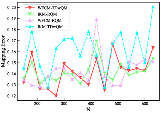 According to Figure 11, the maximum mapping error of WFCM-TDwQM does not exceed 0.164, and its overall error variation is better than that of IKM-TDwQM. In most cases, the remaining two algorithms exhibit lower individual mapping errors, but their performance is less stable overall.