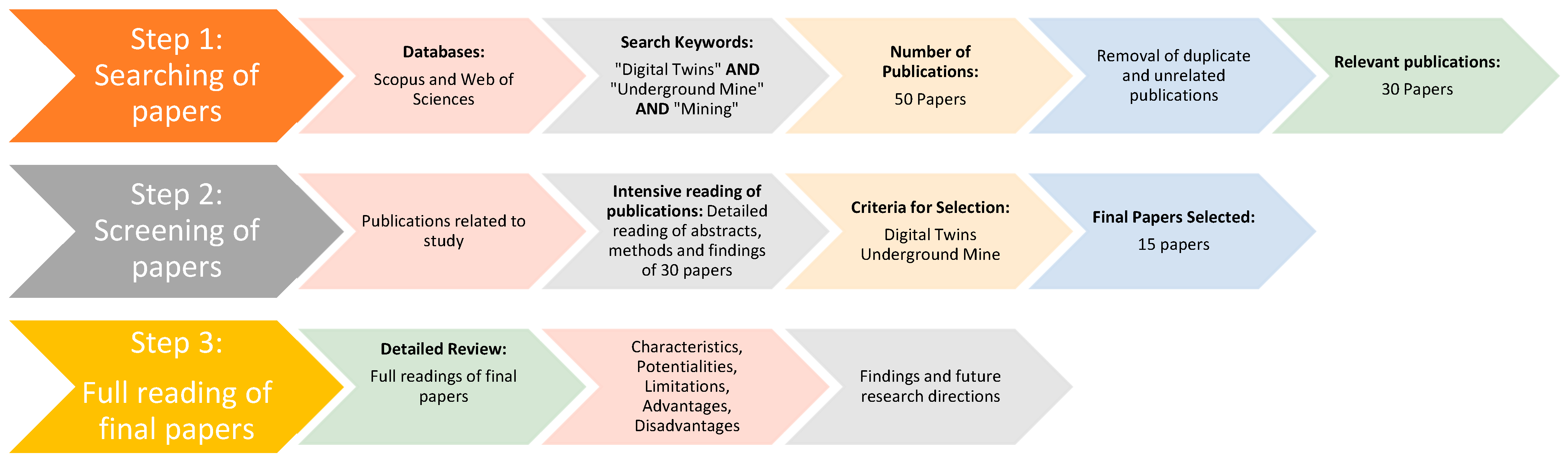 | Title/Subject-Abstract | “Digital Twins” AND “Underground Mine” AND “Mining” |