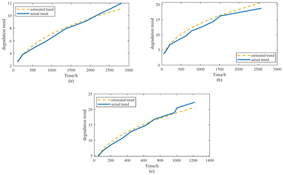 To assess how well the estimated model-to-trend parameters capture the underlying degradation behavior, the obtained estimates are substituted into Equation (