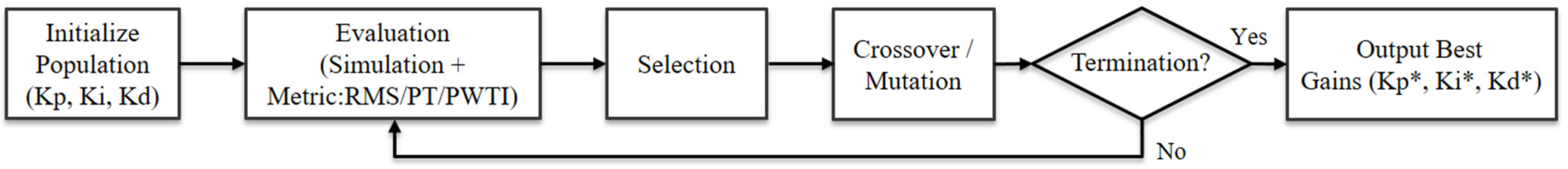 3.4. Genetic Algorithm-Based PID Gain Optimization