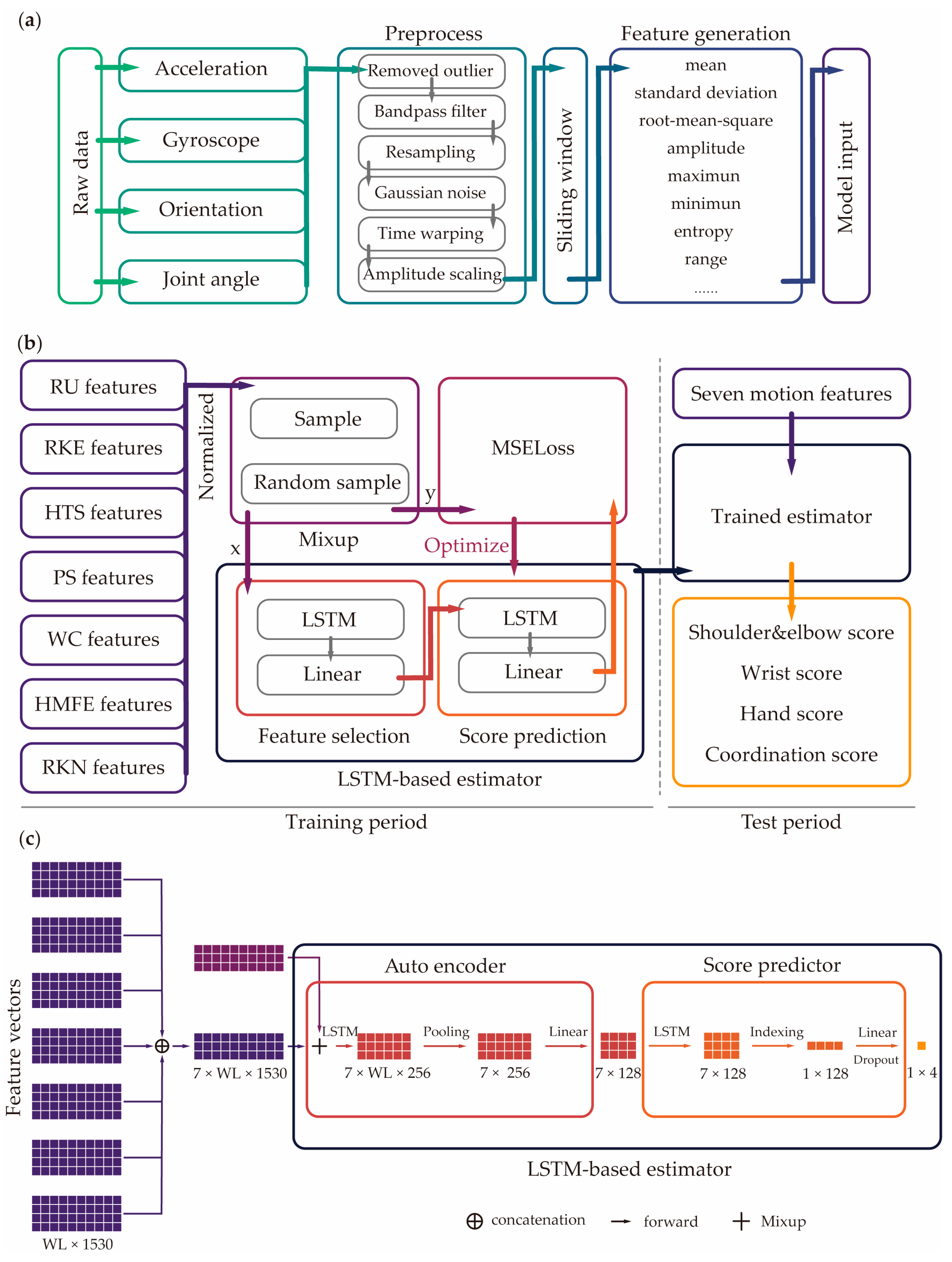 Chicago/Turabian StyleLiu, Minghao, Hsuan-Yu Lu, Shuk-Fan Tong, Dezhi Liang, Haoyuan Sun, Tian Xing, Xiangqian Shi, Hongliu Yu, and Raymond Kai-Yu Tong. 2025. "Estimation of Fugl–Meyer Assessment Upper-Extremity Sub-Scores Using a Mixup-Augmented LSTM Autoencoder and Wearable Sensor Data" Sensors 25, no. 21: 6663. https://doi.org/10.3390/s25216663