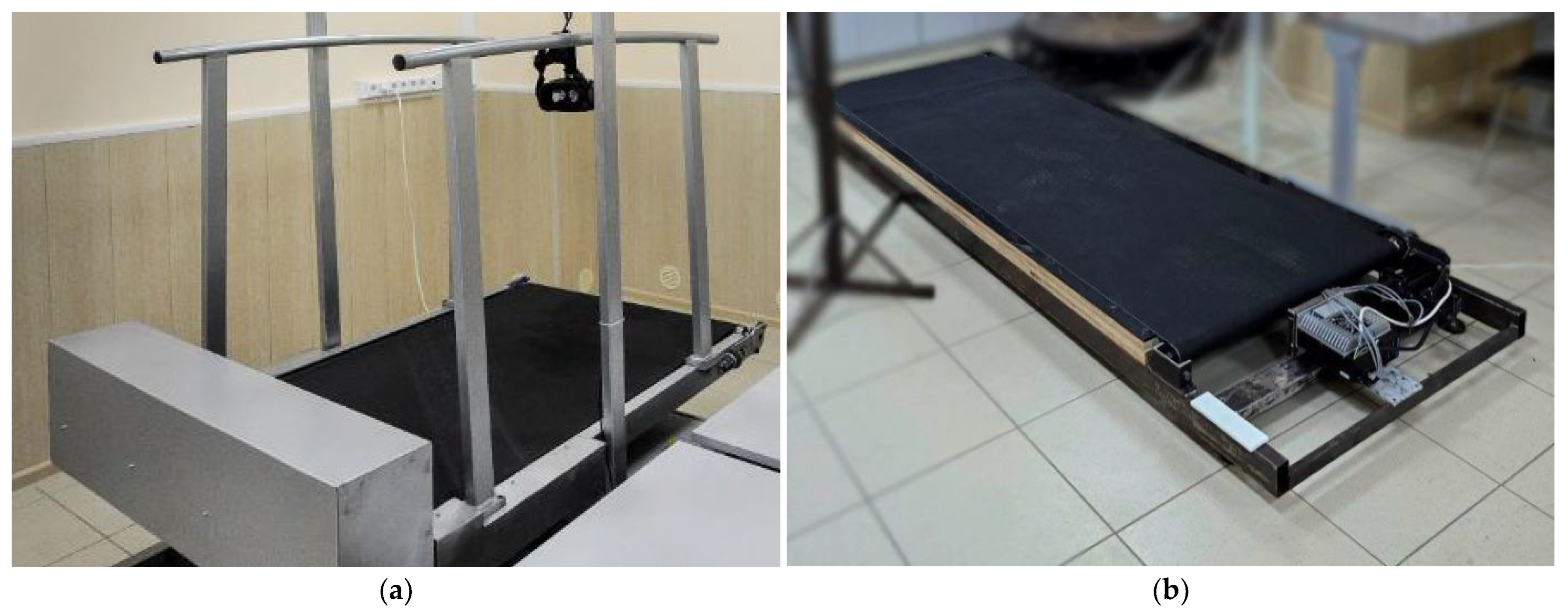 This study was conducted on a limited sample of healthy volunteers (15 participants in total); therefore, the results cannot be directly generalised to other population groups. Individual differences in physical characteristics and gait patterns may affect the effectiveness of control algorithms, and the statistical significance of the observed trends cannot be confirmed given the small sample size. Even within this small group, such individual variations were already noticeable. For individuals with gait pathology (e.g., after neurological injuries or with balance disorders), greater positional fluctuations and higher variability in response to treadmill speed changes are expected. This implies that the control algorithms may require different tuning (smoother response, increased safety margins) to ensure comfort and safety for such users. Moreover, patients are likely to require continuous support (handrails, safety harnesses). We therefore recognise the absence of patient data as a limitation of the current study. In future research, we plan to involve a larger and more diverse group of participants, including individuals with gait impairments, to validate the general applicability and robustness of the findings and, if necessary, adapt the algorithms to patient-specific needs.