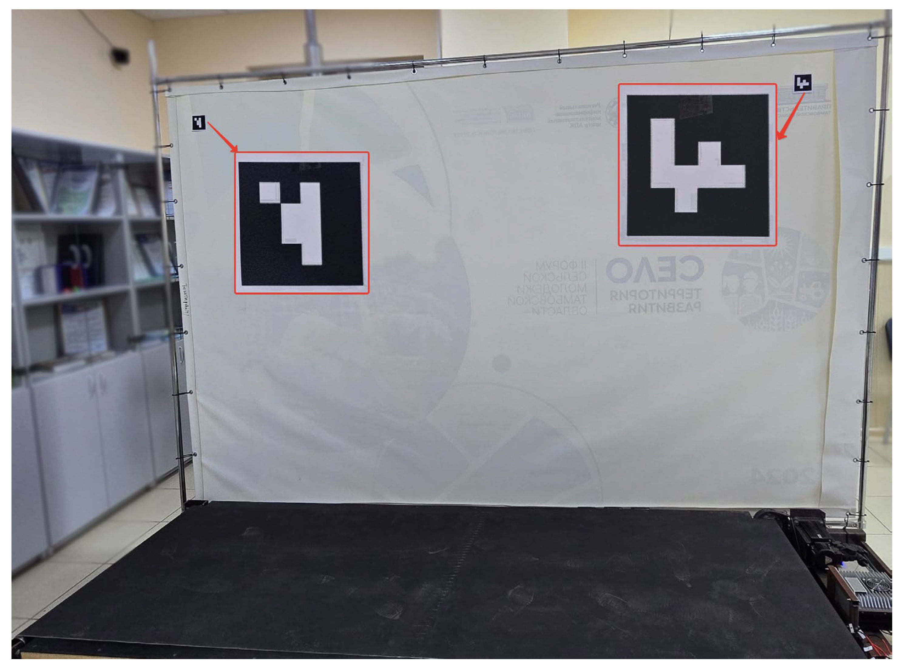 Each time the system is started, these markers are recognised again, and if their position deviates significantly from the specified position, it can be concluded that the camera has shifted from its original position, which can lead to unstable and incorrect operation of the entire control system. Finally, the module for converting MediaPipe Pose normalised coordinates to the metric system, based on a pre-calibration mechanism, has been implemented:
