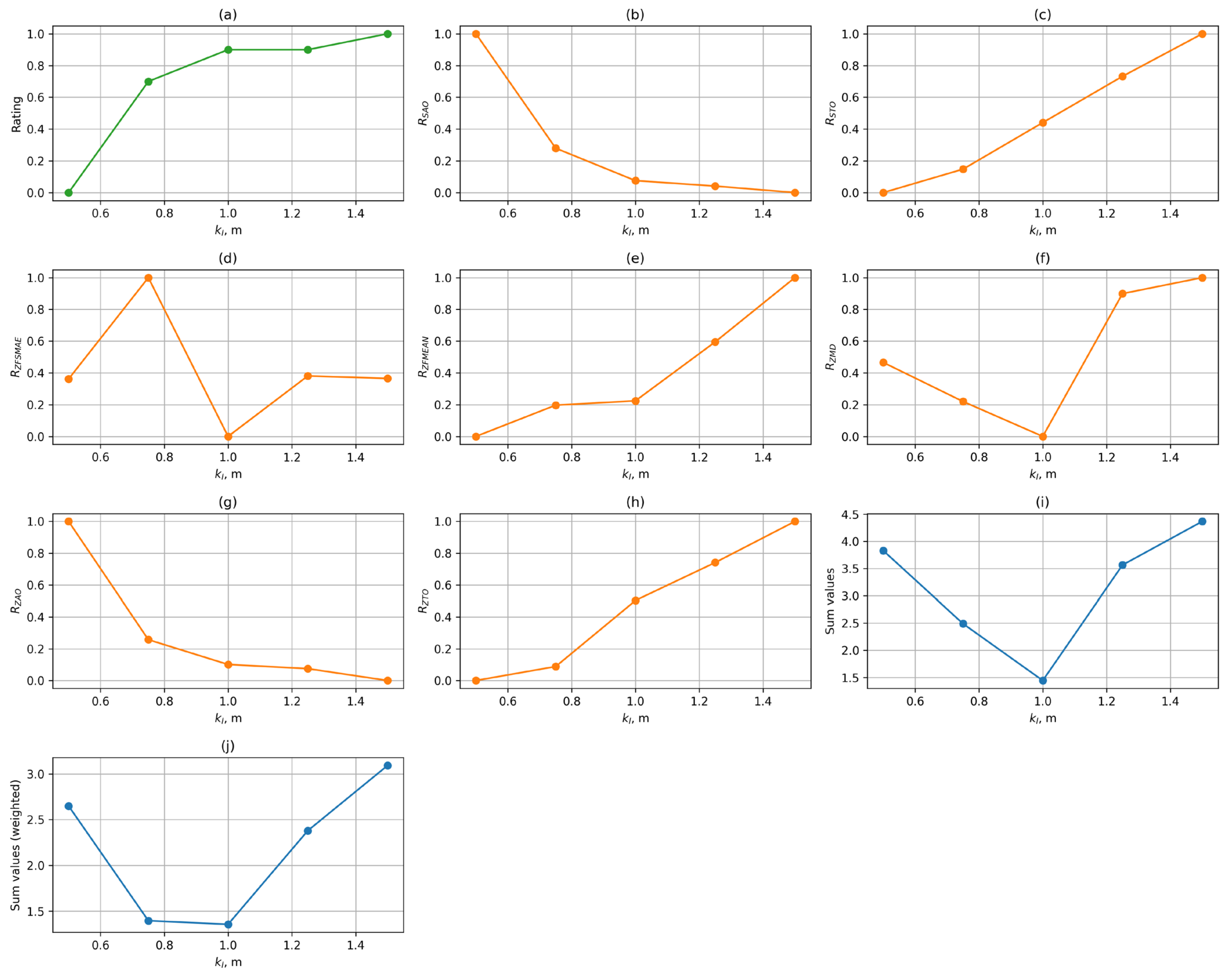 parameter (proportional coefficient) is set to 2. The optimality of the selected values is due to the fact that this combination corresponds to the lowest weighted sum of criteria (