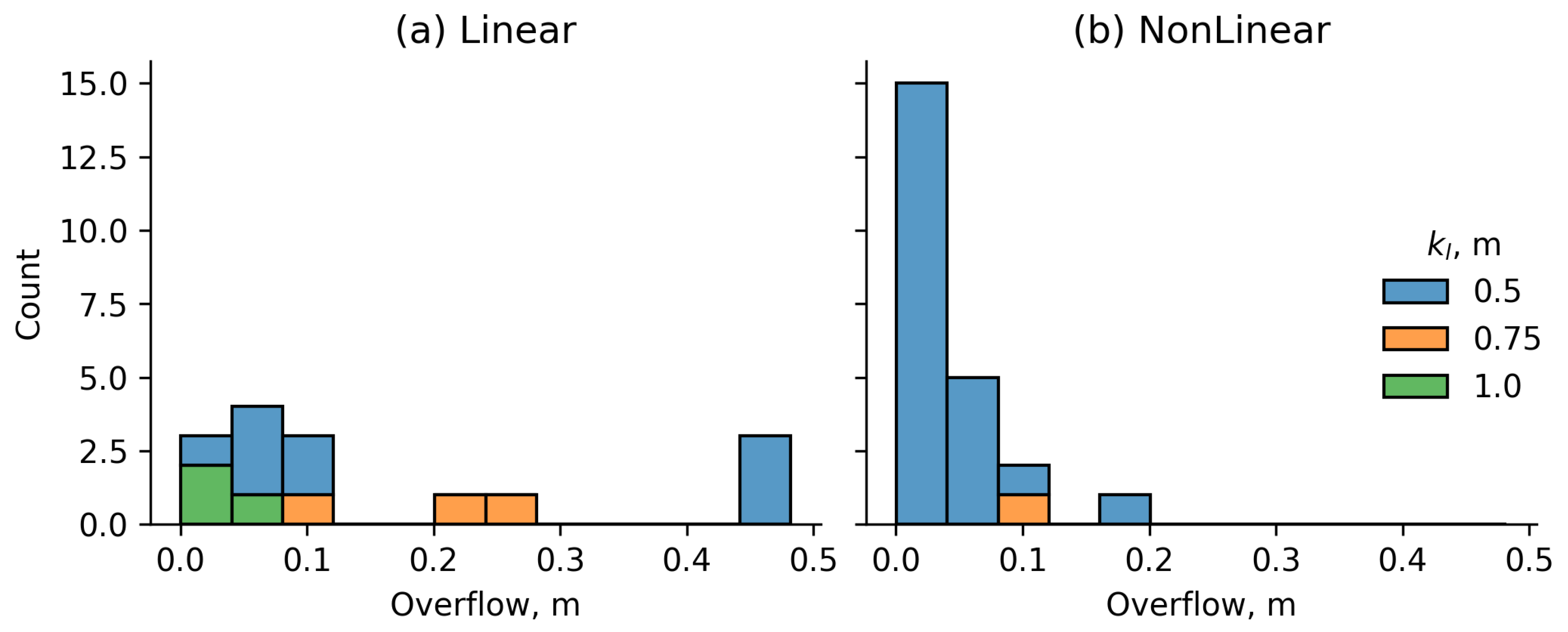 Figure 14 shows the distribution of cases depending on the length of the workspace and the control function.