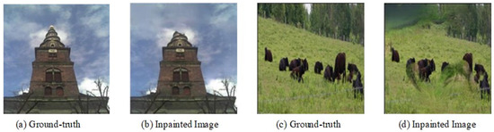 - Xiong, W.; Yu, J.; Lin, Z.; Yang, J.; Lu, X.; Barnes, C.; Luo, J. Foreground-aware image inpainting. In Proceedings of the IEEE/CVF Conference on Computer Vision and Pattern Recognition, Long Beach, CA, USA, 15–20 June 2019; pp. 5840–5848. [Google Scholar]