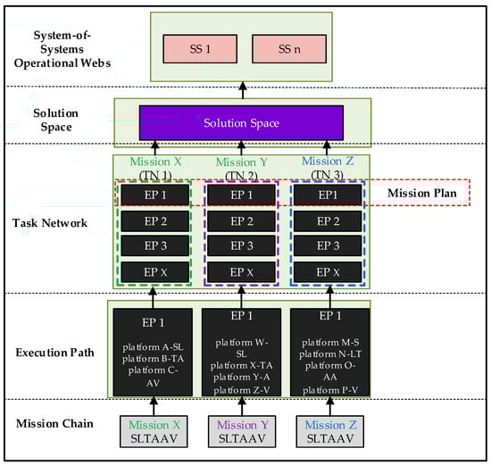 This review of the state of the art reveals a critical gap: the absence of a unified, hierarchical framework that can systematically model the entire mission workflow and translate high-level strategic goals into an optimized, low-level operational plan. This paper bridges this gap by proposing a novel hierarchical framework. We refine and formalize the general concept of a “Task Execution Chain” into our structured Mission Chain (MC), which serves as the strategic backbone for modeling and optimizing. Our framework decomposes a mission into a three-level hierarchy: the Mission Chain (MC), which defines the overall strategic workflow; the Execution Path (EP), representing a specific combination of agents capable of completing the mission for a single target; and the Execution Task (ET), which represents the fundamental action performed by an individual agent, such as ‘sensor S1 tracks target T2’ or ‘effector E3 services target T2’. This structure provides a clear and scalable way to manage mission complexity.