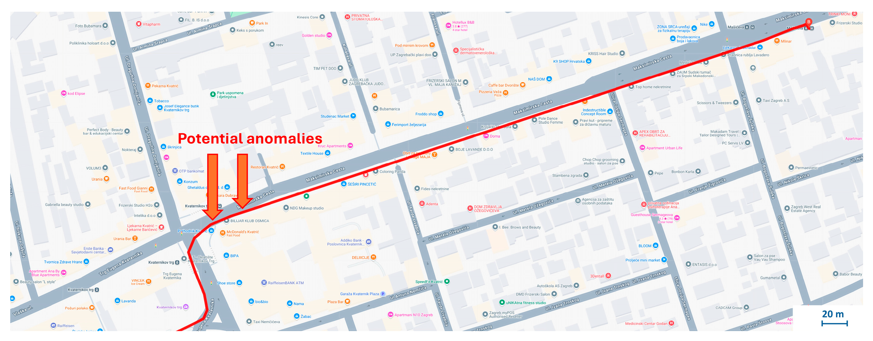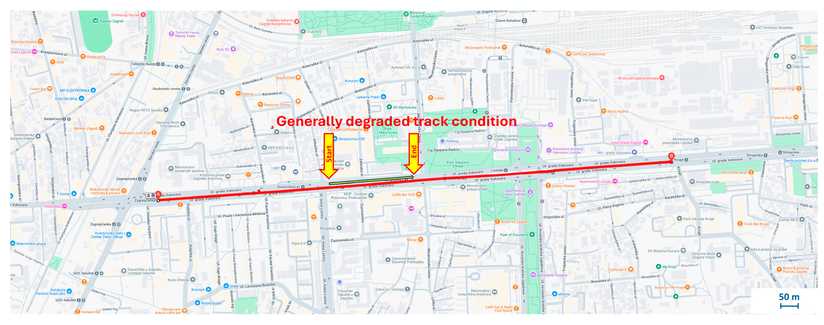 To further validate the system, data was collected along a 2.69 km tram route from Dubrava to Kvaternik Square, generating more than 15,000 samples in about 10 min,