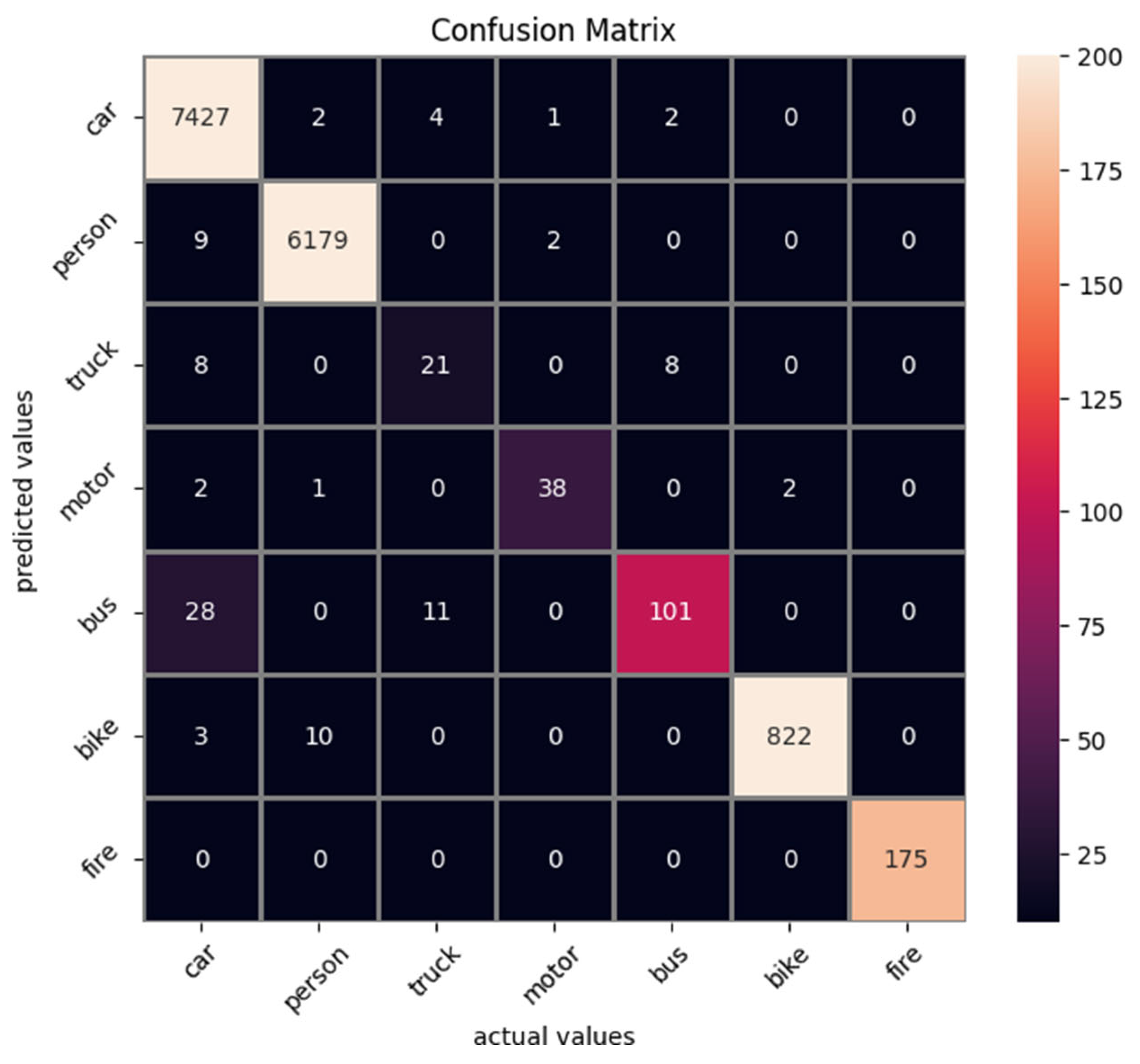 | Model | All | Car | Person | Truck | Motorcycle | Bus | Bicycle | Fire |