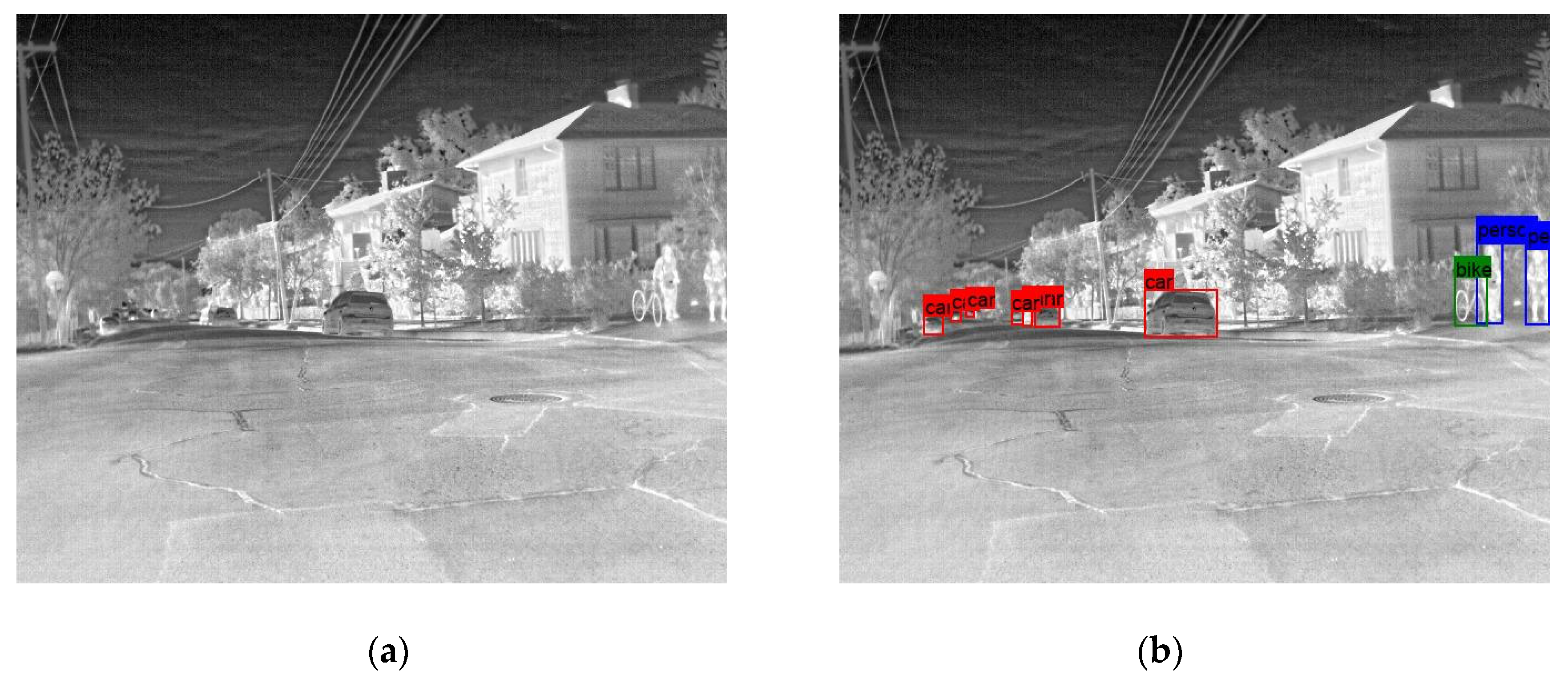 - Dai, X.; Yuan, X.; Wei, X. TIRNet: Object detection in thermal infrared images for autonomous driving. Appl. Intell. 2021, 51, 1244–1261. [Google Scholar] [CrossRef]