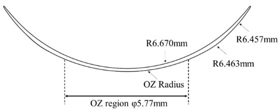 | Sample No. | Designed Radius of Curvature in the OZ Region [mm] | Measurement of OZ Radius [mm] | |