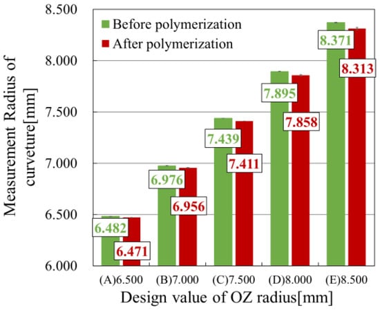 | Sample No. | Designed Radius of Curvature in the OZ Region [mm] | Polymerization Shrinkage Rate |