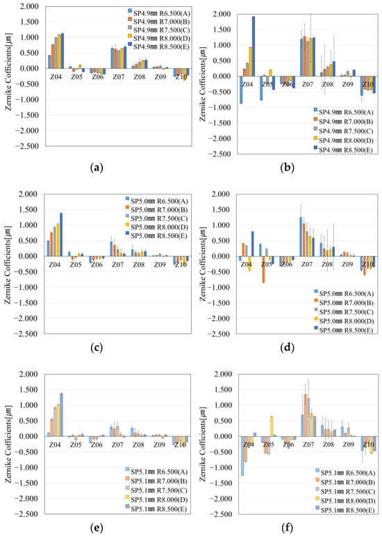 6.2. Relationship Between Resin Mold Thickness and Zernike Coefficients