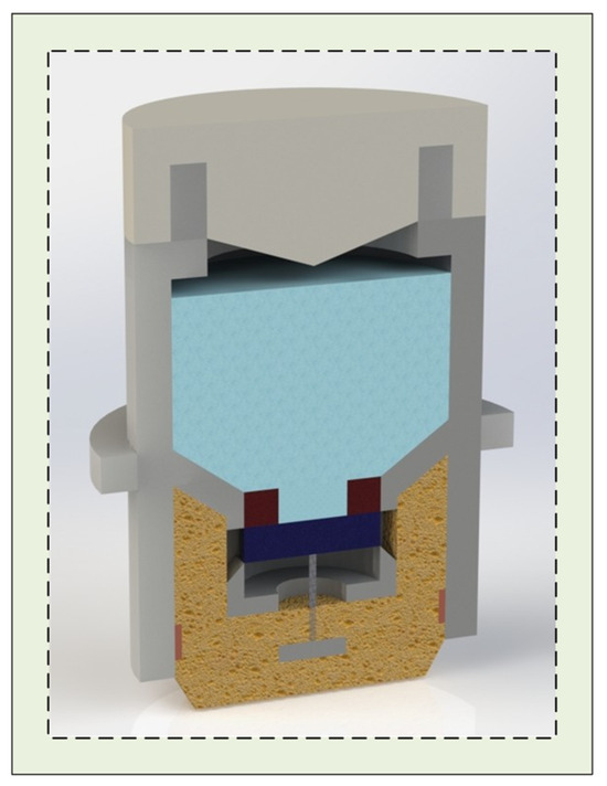 In this design, magnet 1 is fixed to the electrode body housing, while magnet 2 is constrained by the support structure to move only along the vertical axis. The attraction and separation between the two magnets regulate the flow of conductive liquid into the underlying PVA sponge. One end of the degreased hair is anchored to the center of magnet 2, with the other end attached to a longitudinal crossbeam connected to the electrode housing (Figure 1, Figure 2 and Figure 3). As the PVA sponge dries, the degreased hair contracts, pulling magnet 2 downward and separating it from magnet 1, thereby allowing conductive liquid to flow through the central hole of magnet 1 into the sponge. As the sponge becomes saturated, the hair absorbs moisture, expands, and loses tension, enabling the magnets to re-adhere and stop further liquid flow. This mechanism completes the automatic replenishment cycle of the semi-dry electrode. When the conductive liquid in the chamber is depleted, the electrode cap is first rotated counterclockwise to open it, refilled to the indicated level (Figure 1A), and then rotated clockwise to lock it. The plug-like structure of the cap compresses residual air in the chamber upon locking, pressurizing the liquid and ensuring consistent flow to the lower structures under varying environmental conditions.