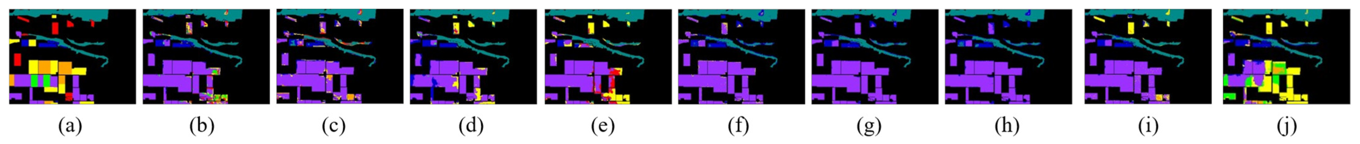| OA | 72.30 ± 2.67 | 71.61 ± 3.05 | 71.39 ± 1.95 | 72.97 ± 1.98 | 75.63 ± 2.07 | 75.61 ± 1.30 | 78.07 ± 0.63 | 77.54 ± 0.37 | 82.29 ± 1.01 |