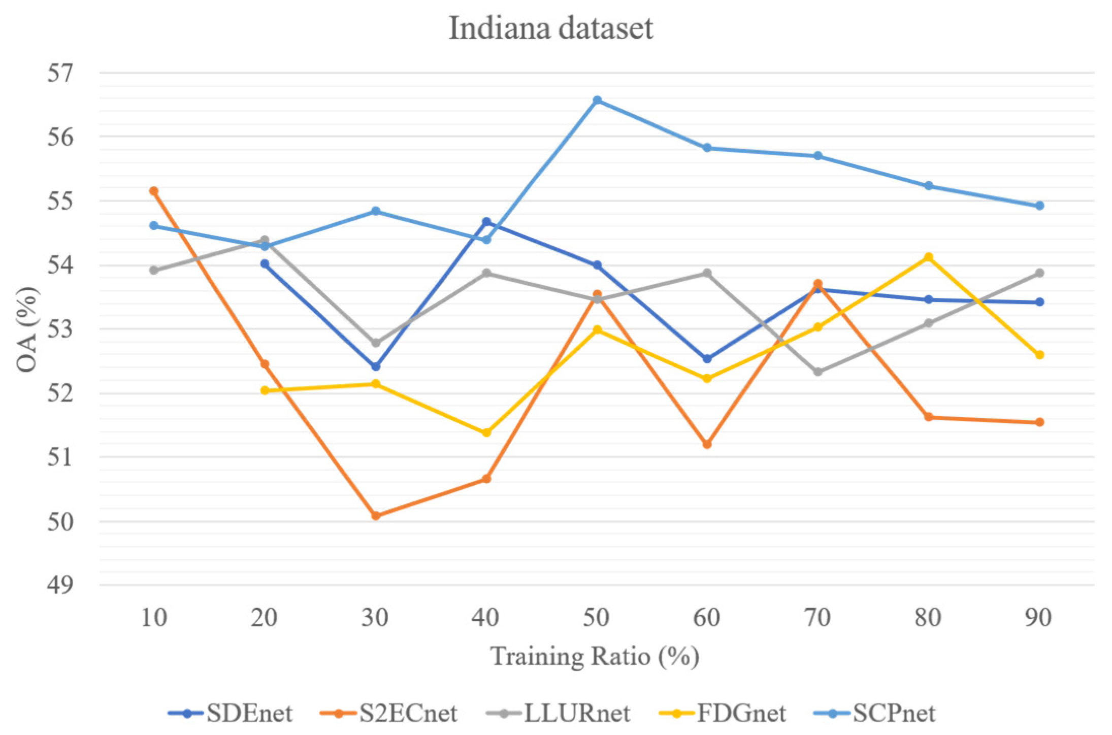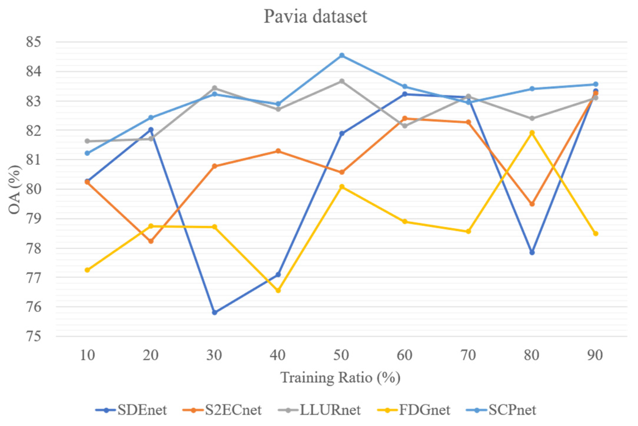 | OA | 74.02 ± 3.08 | 74.04 ± 2.22 | 74.39 ± 3.13 | 74.98 ± 3.46 | 81.89 ± 0.87 | 80.58 ± 0.30 | 83.67 ± 0.38 | 80.09 ± 1.11 | 84.53 ± 0.94 |