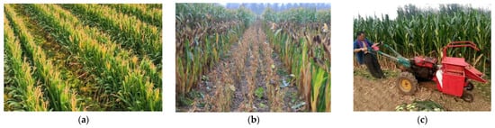 Different harvesting methods/practices for soybean–maize intercropping. (a) Soybeans mature first in intercropping pattern; (b) unified harvest after corn matures; (c) corn harvested after soybeans.