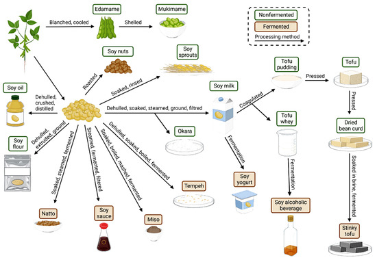 Diagram of soybean resource utilization and product development: Integrating fermentation and non-fermentation technologies in the food industry.