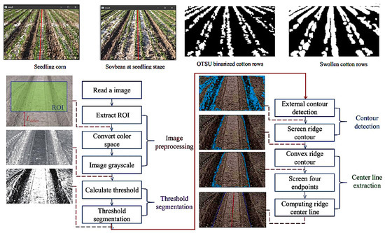 Integrating crop information is vital for path recognition and planning: Kachappilly, A et al. [134] used point cloud processing to assess and optimize paths based on crop damage risk. Soitina, Riikka et al. [135] presented a new coverage path-planning method for two cooperative autonomous tractors, ensuring collision-free operation through task decomposition and real-time scheduling. Fu, HT [136] introduced BiLG-D3QN, a deep reinforcement learning algorithm for segmented coverage path planning that balances load and energy. Liang, X [137] combined edge detection and the OTSU algorithm for path recognition in scenarios with broken rows and missing seedlings (Figure 16).