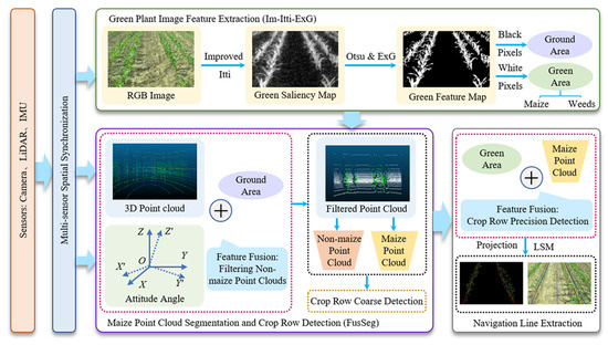 - Ban, C.; Wang, L.; Chi, R.J.; Su, T.; Ma, Y.Q. A Camera-LiDAR-IMU fusion method for real-time extraction of navigation line between maize field rows. Comput. Electron. Agric. 2024, 223, 109114. [Google Scholar] [CrossRef]