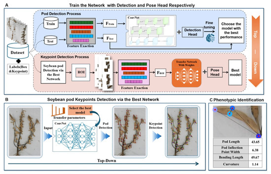 - Liu, F.; Liu, H.; Wu, Q.; Han, Z.; Pang, S.; Wang, S.; Zhao, L. Pod-pose: An efficient top-down keypoint detection model for fine-grained pod phenotyping in mature soybean. Plant Methods 2025, 21, 82. [Google Scholar] [CrossRef]